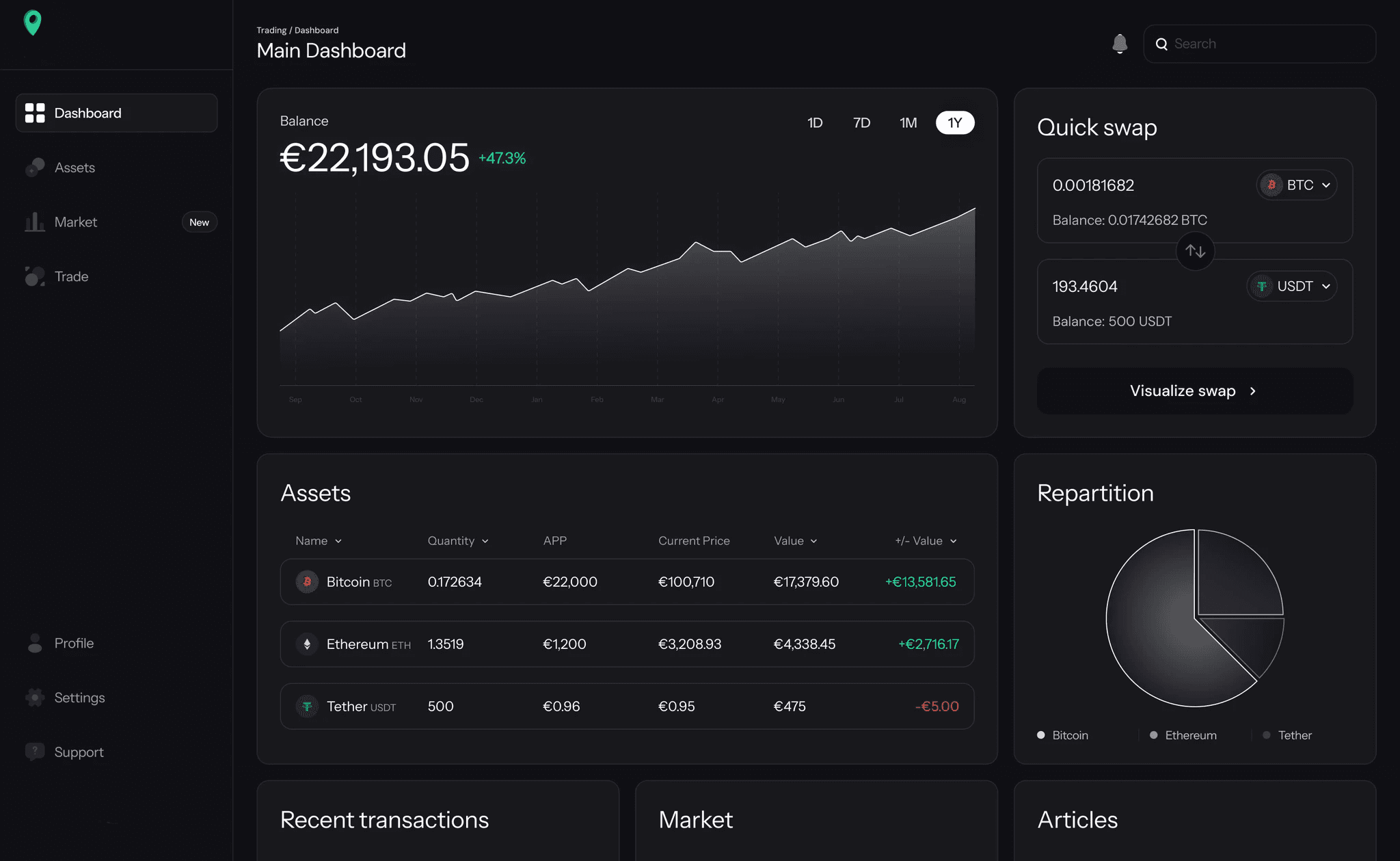 Deposit your cryptos or make a transfer to start trading.